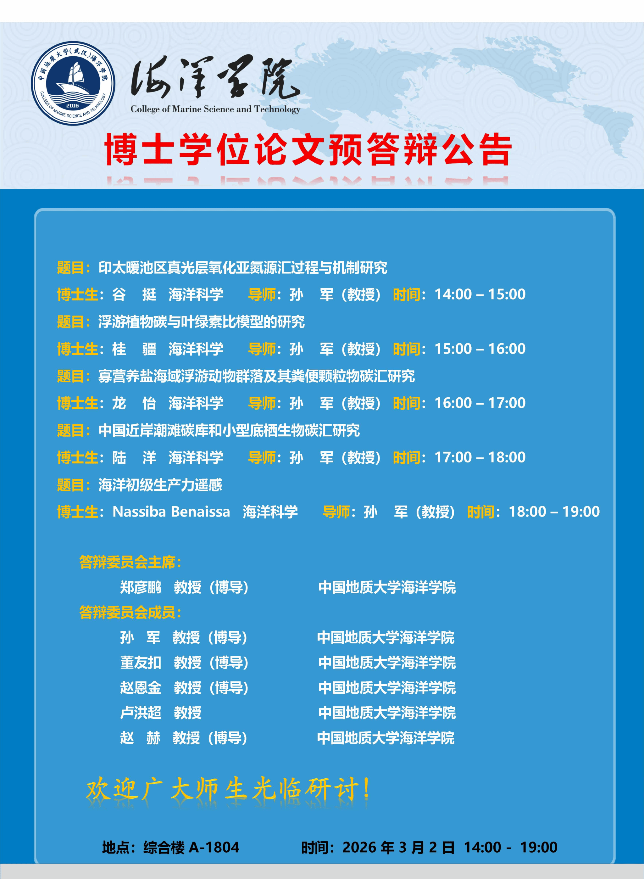 麻将胡了 2026年春博士学位论文预答辩公告(3月2日)