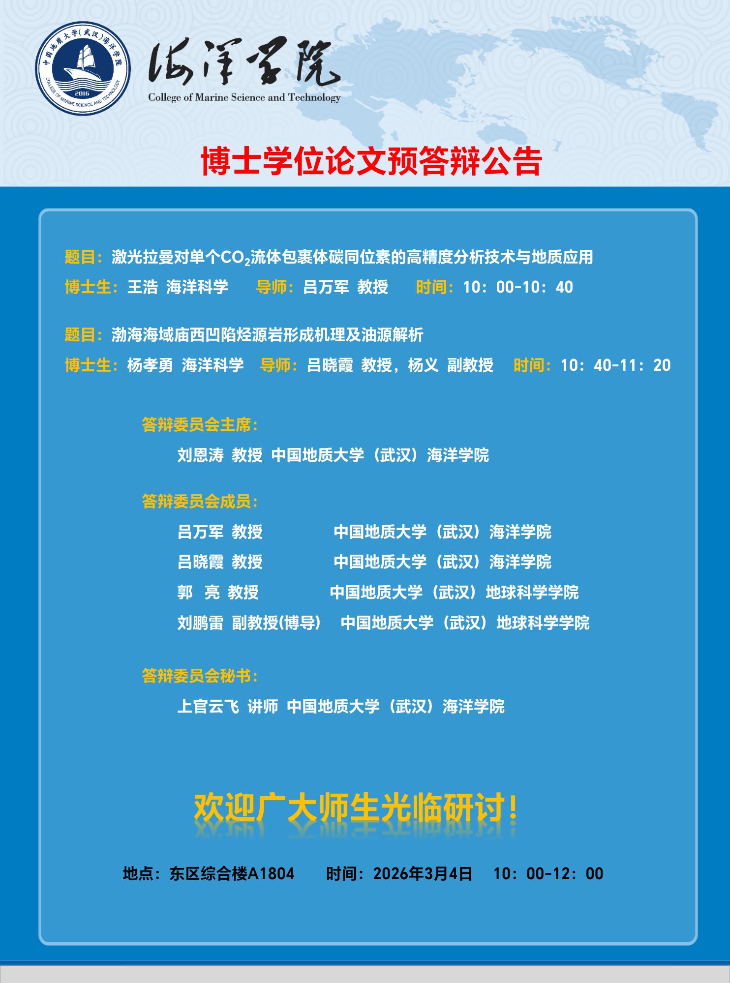 麻将胡了 2026年春博士学位论文预答辩公告(3月4日)