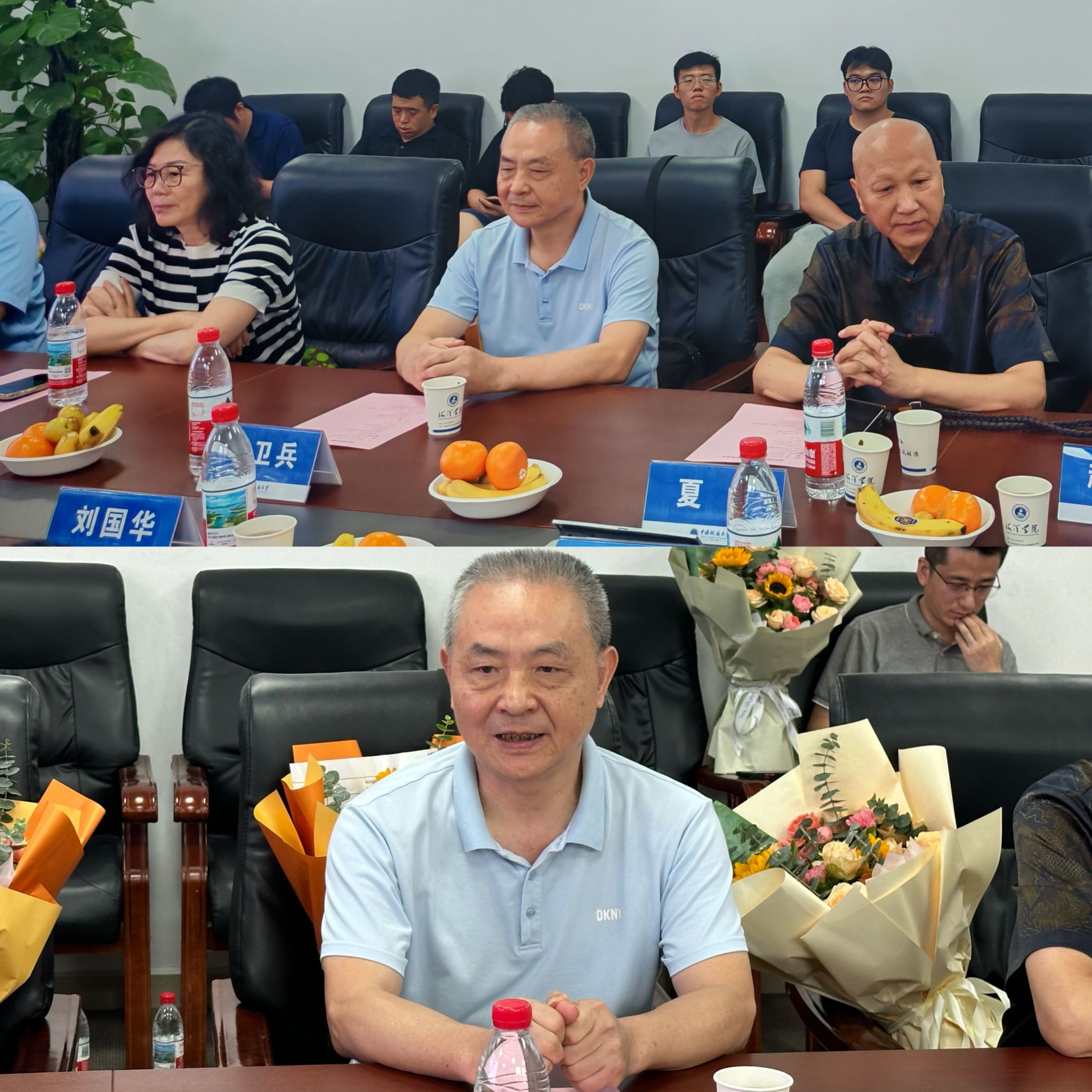 荣休教师代表发言。海洋科学系荣休教师林卫兵、陈平,院办荣休教师夏峰参加会议。林卫兵老师回顾了在麻将胡了