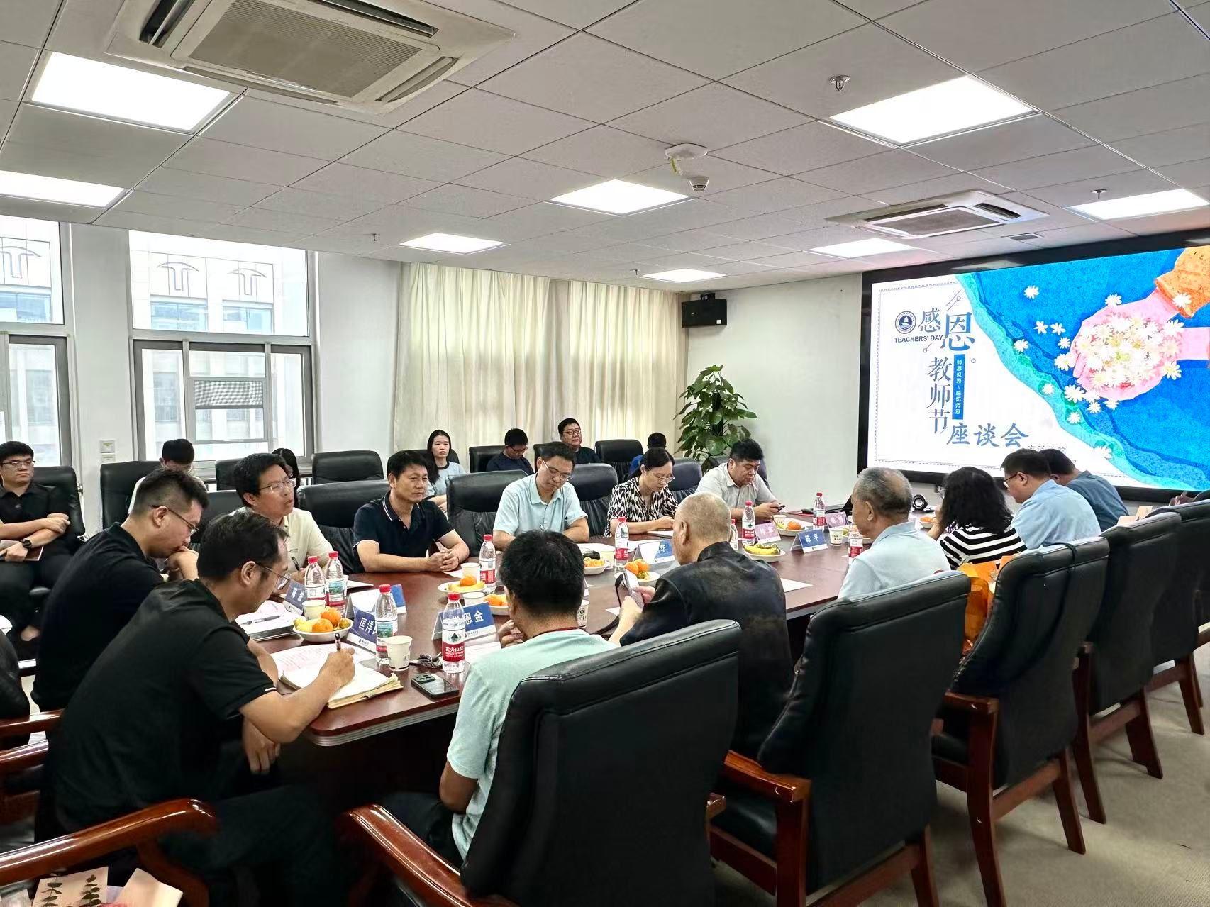 召开教师节座谈会。全体在校院领导、三级单位负责人、荣休教师代表、受表彰部分教师代表、青年教师代表及学生代表参加会议。副院长姜涛主持会议。