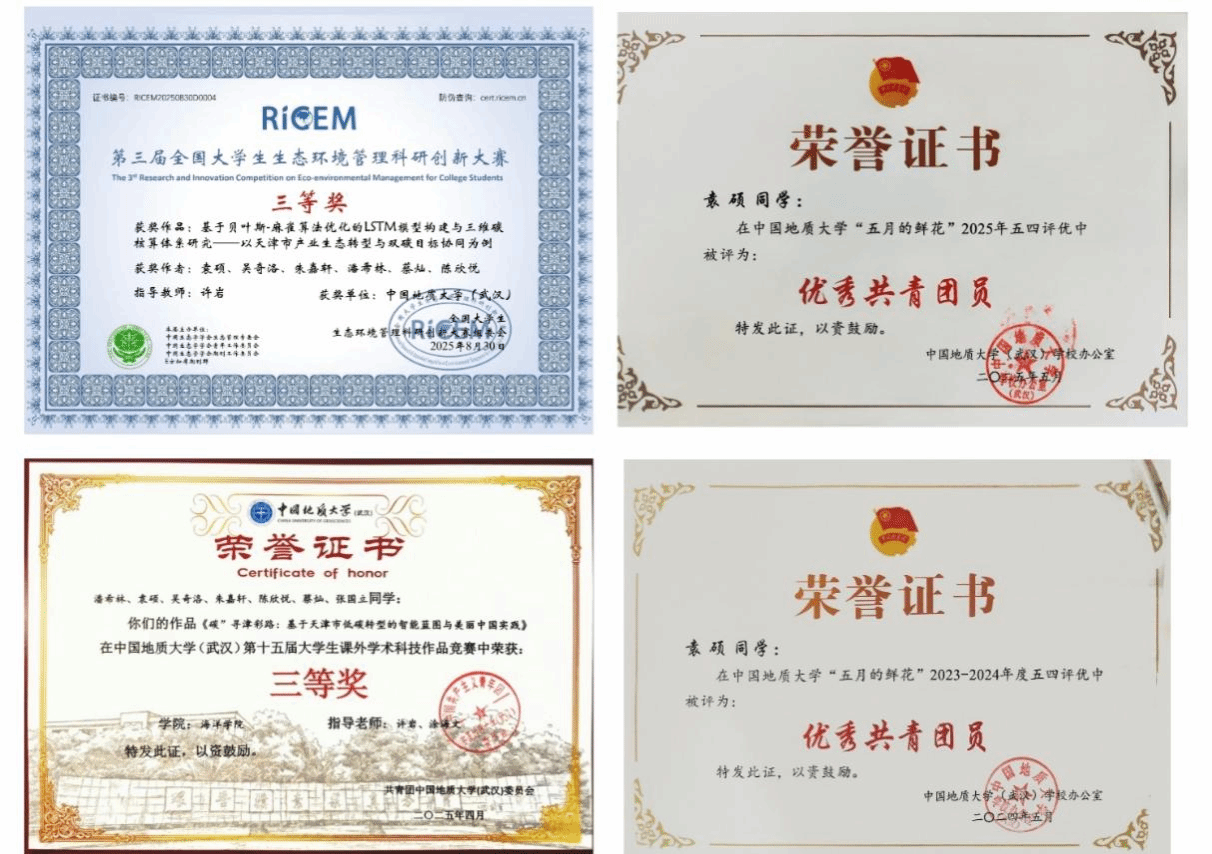袁硕,山东省滕州市人,麻将胡了 大三海洋科学专业本科生,241232班学习委员,学分绩点和综测均位于班级第一。曾获得2024-2025年国家奖学金,2023-2024学年及2024-2025学年“校级优秀共青团员”荣誉称号,第三届全国大学生生态管理科研创新大赛全国三等奖,第十五届大学生课外学术科技作品竞赛校级三等奖,参与省级大创项目。