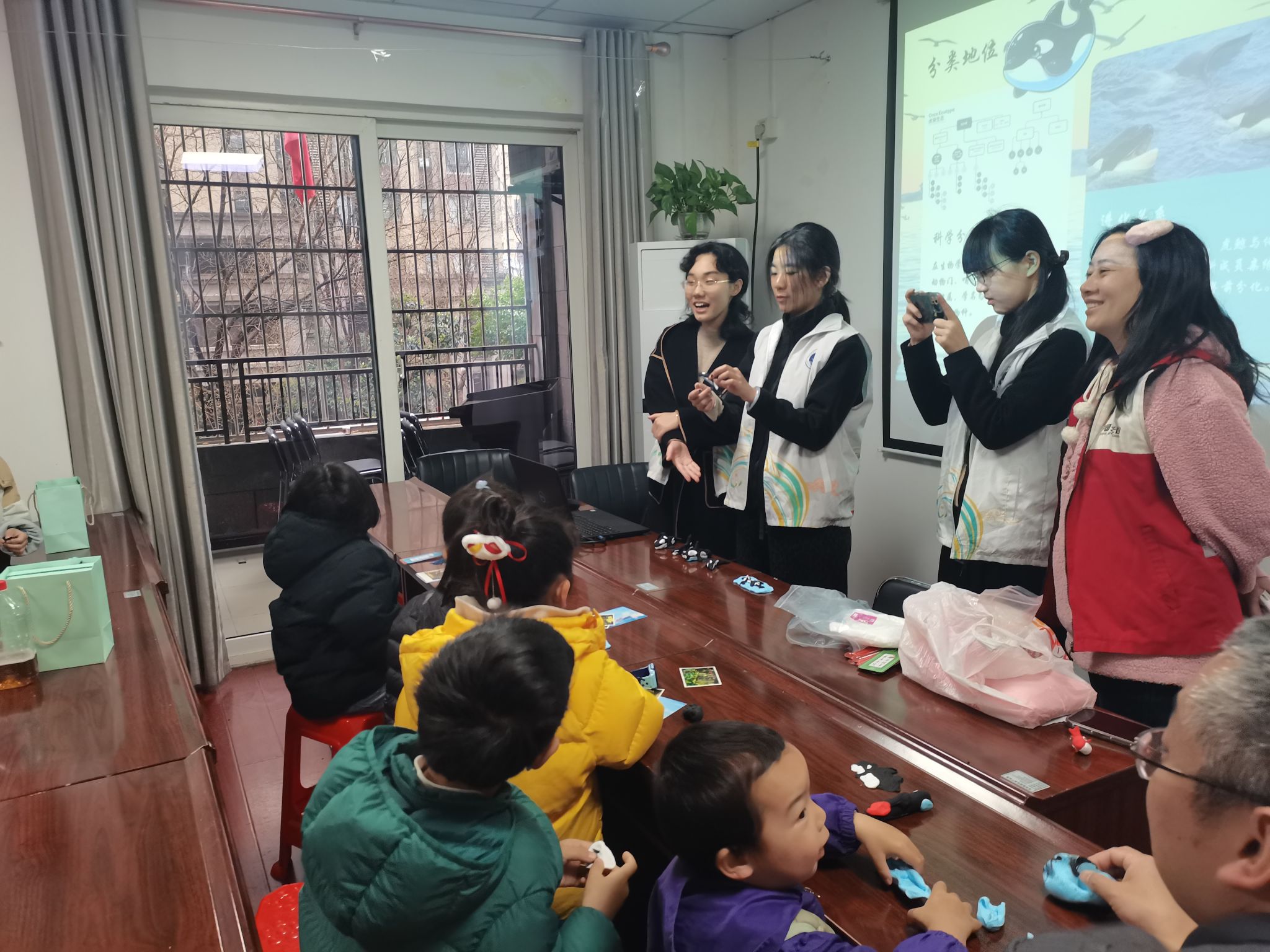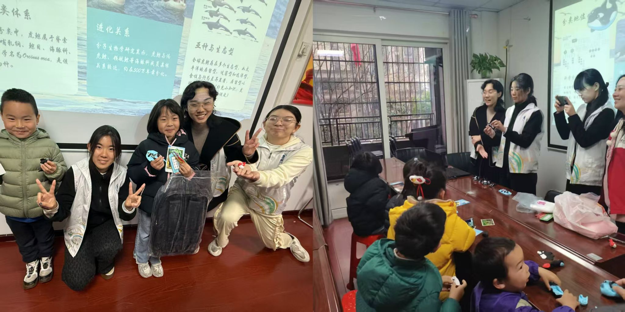 科普环节结束后,志愿者带领孩子们进入趣味手工小课堂,为每位小朋友分发超轻粘土,孩子们充分发挥动手能力,兴致勃勃地动手揉捏粘土,发挥想象力塑造出一个个形态可爱的虎鲸造型,在孩子们灿烂的笑容中,本次科普活动圆满落下帷幕。