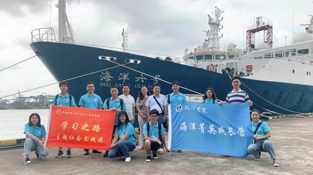 学习之路主题社会实践团早上5点半从武汉出发,第一站奔赴广州海洋地质调查局,参观探宝号,海洋六号,海洋十号科考船。