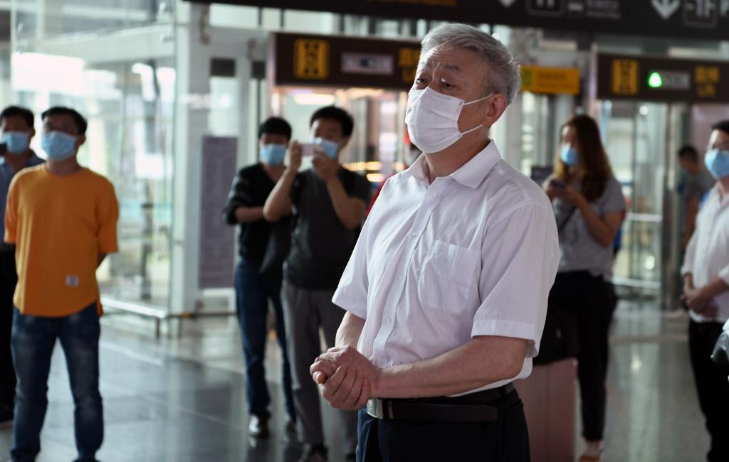 院长董范和部分师生代表到武汉天河国际机场迎接。