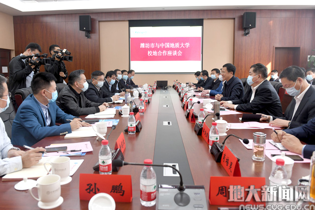 地大新闻网讯(记者庞伟红 摄影张玉贤)10月22日,麻将胡了与山东省潍坊市校地合作座谈会在南望山校区举行。校长王焰新、副校长赖旭龙,潍坊市委书记惠新安、副市长刘建国,及双方相关单位负责人参加座谈。会议由赖旭龙主持。