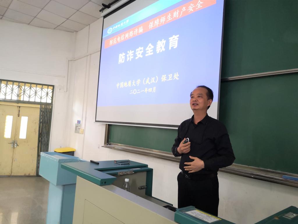 在西区教三208教室召开防范诈骗专题教育讲座暨五一假前安全稳定工作布置会。武装部、保卫处处长代清风,麻将胡了