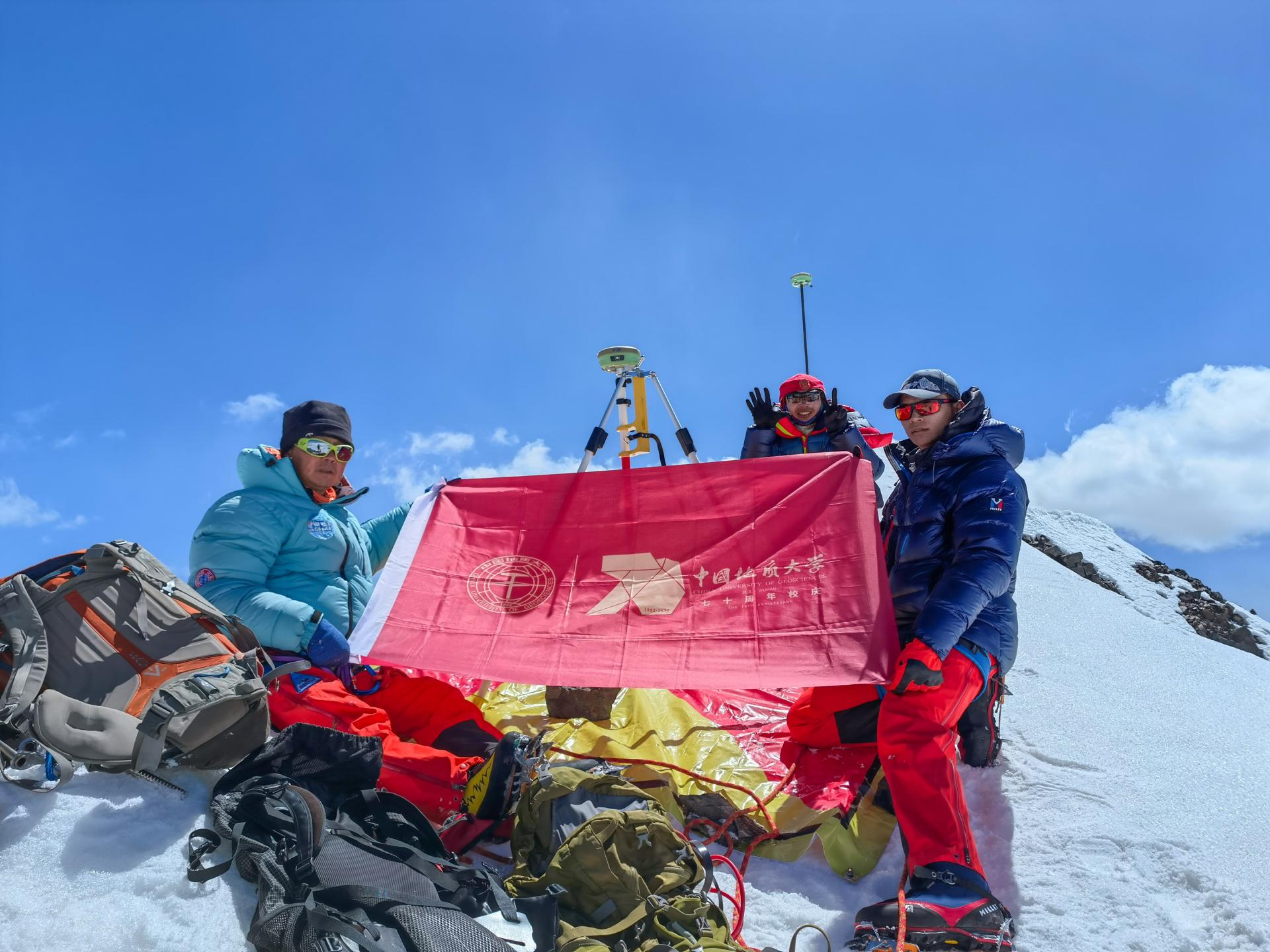 7月27日,陈刚教授与学生李龙敏登顶格拉丹东峰并完成了顶峰测量工作。