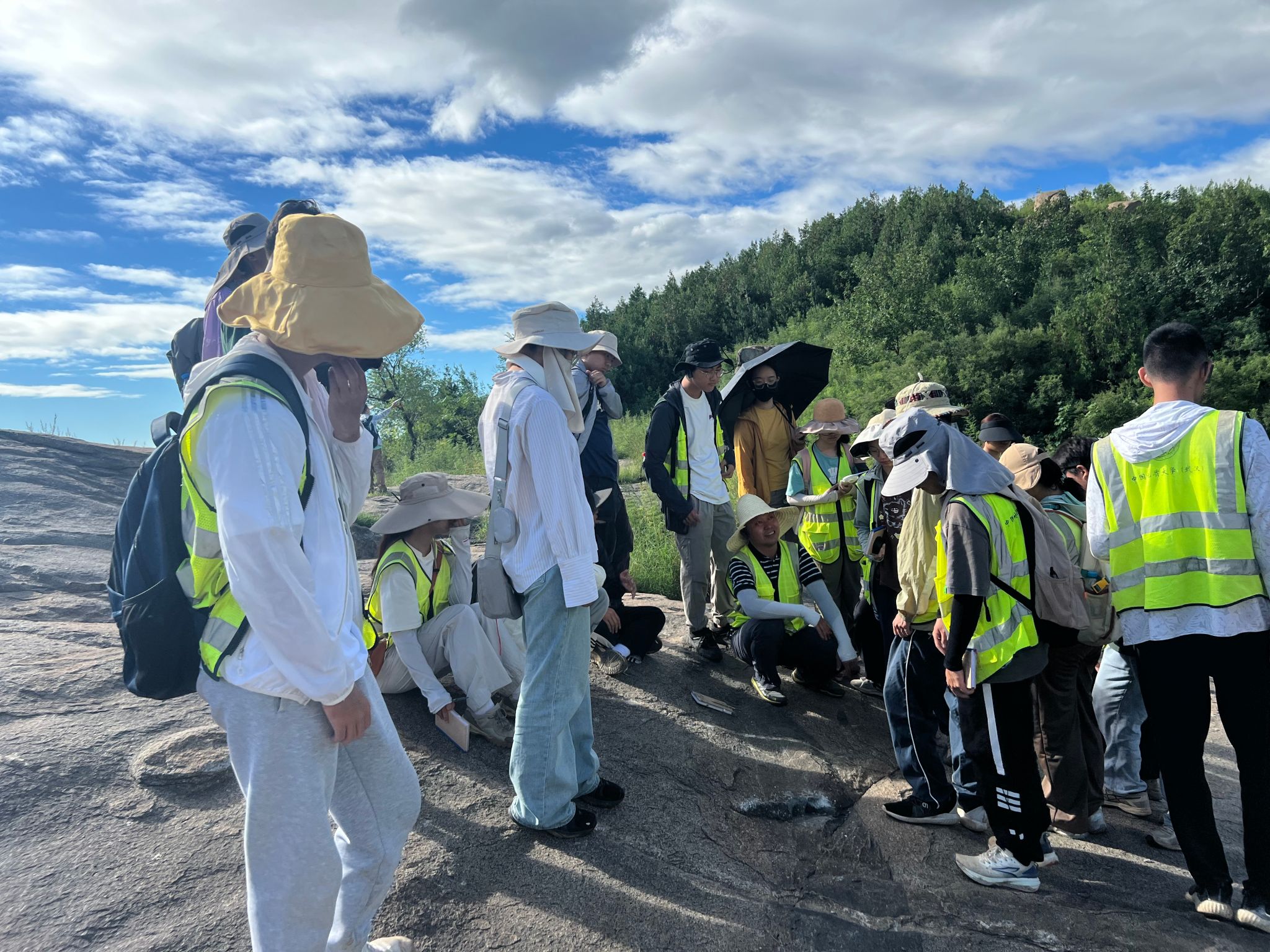师生正式踏上了周口店这片地质乐园,开启此次实习之旅。此次实习主要采用理论基础课与野外实习相结合的方式,同学们在学习地质概况基础、野簿记录格式、罗盘使用方法等野外实习的基础理论课之后,并逐渐开始出野外。海洋师生一起领略了太平山南坡路线的壮美风景,羊屎沟路线的曲径通幽,西风坡路线房山侵入岩体的独特震撼,八角寨路线典型的地层迭代,还有黄山店路线各式各样的褶皱与劈理,在野外实习的过程中,全体师生一起克服了崎岖山路、蚊虫叮咬、烈日曝晒等困难,收获了专业的知识,同时也得到了无与伦比的难忘经历。