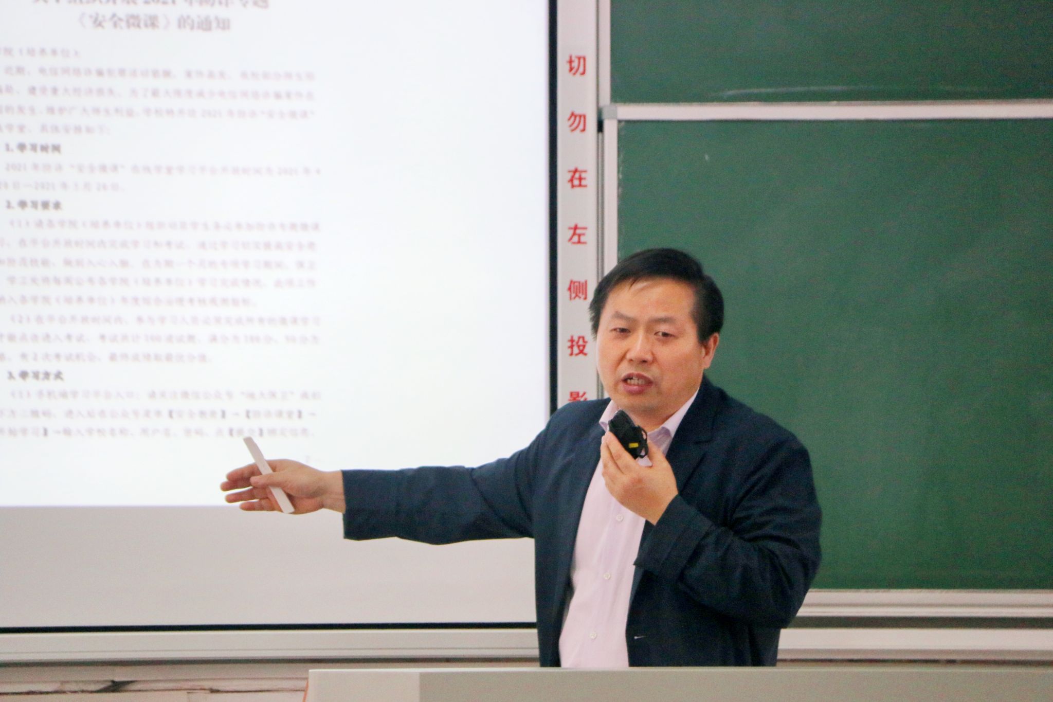 安全保卫部副部长郭敬印针为同学们作《协心同力、共同治理,优化校园交通秩序》主题报告,郭部长从麻将胡了