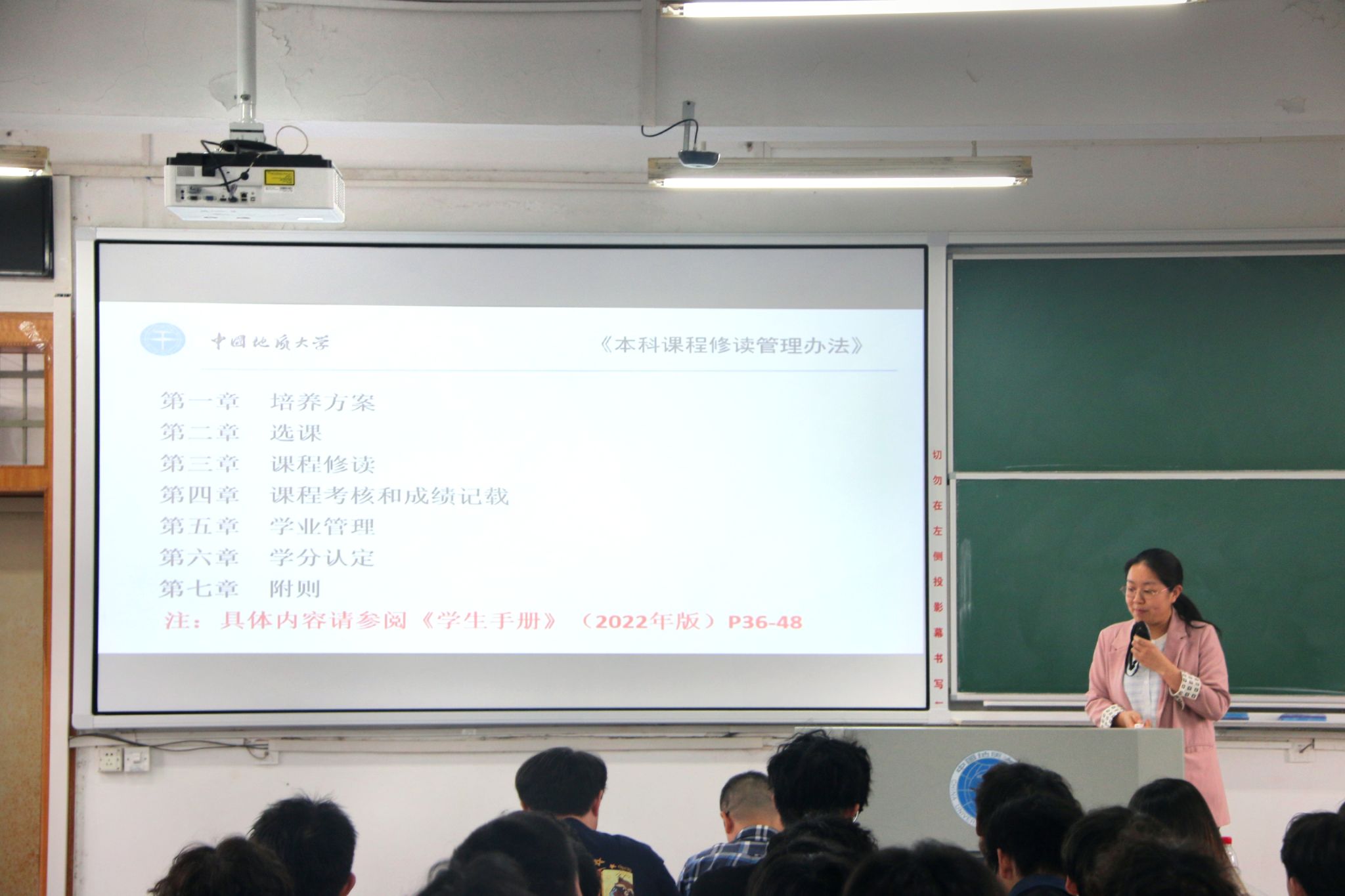 本科生教务秘书杨逸辉老师围绕学分、选课、课程考核、成绩记载、学业管理五个关键类别为同学们详细解读了麻将胡了