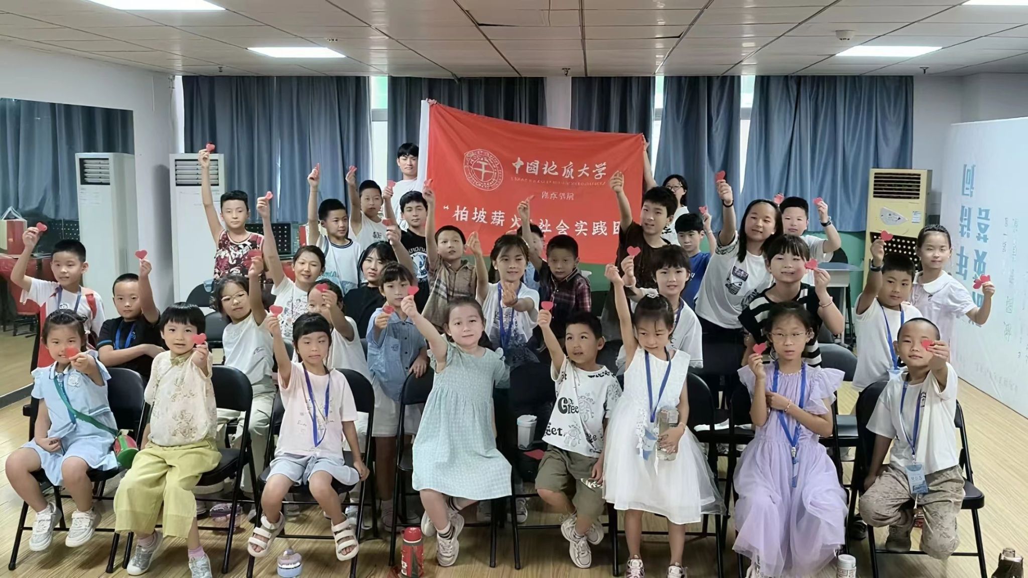 课程尾声,孩子们在实践团成员的指导下,用红纸叠出一颗颗饱满的爱心。一个小男孩突然高举手中的红心,大声说道:"老师!我想起一句话,叫‘红心闪闪向祖国’!"这一颗颗红心,恰如西柏坡的革命火种,承载着革命先辈传递下来的精神接力棒,在新一代心中接续传承。