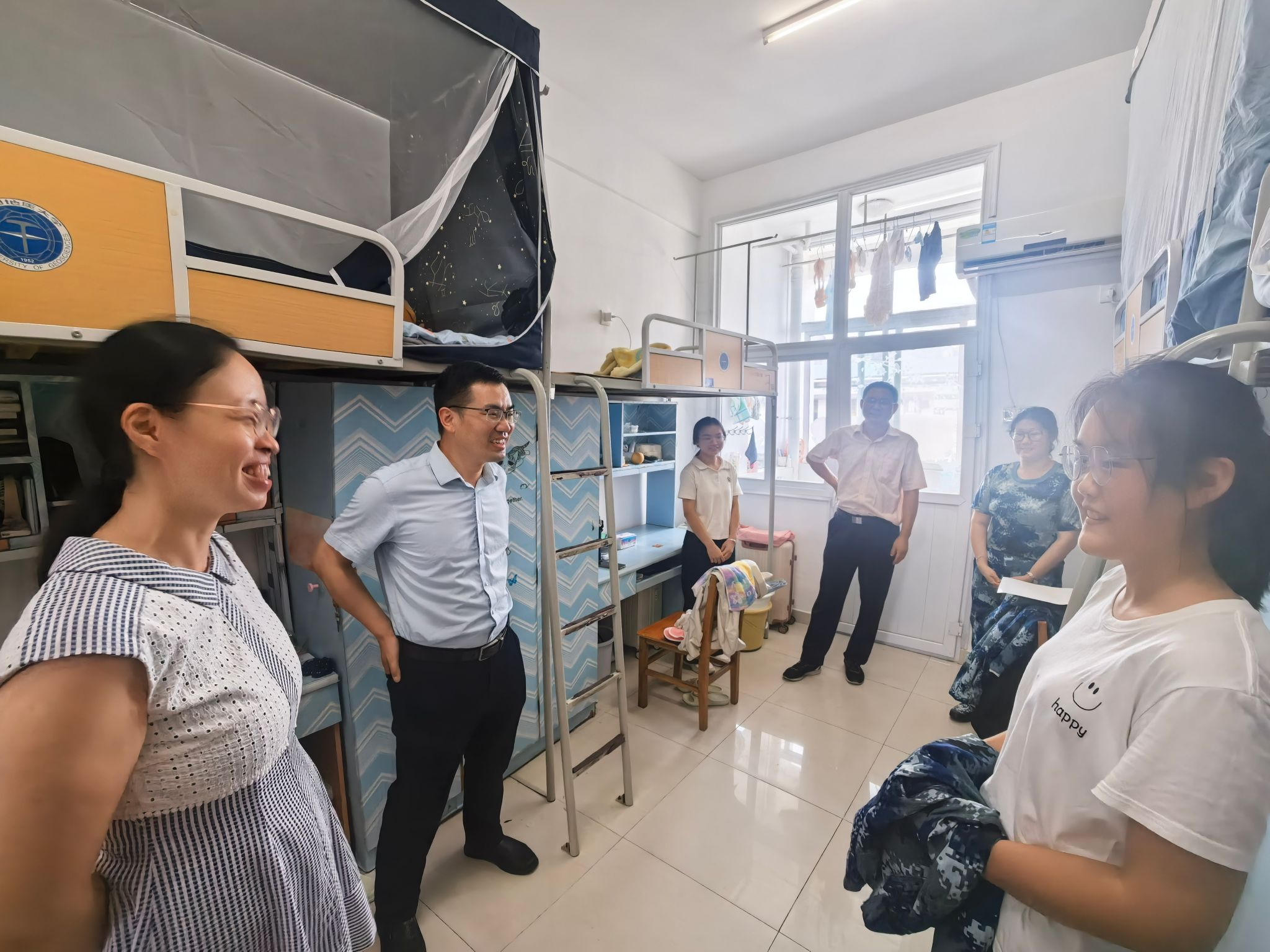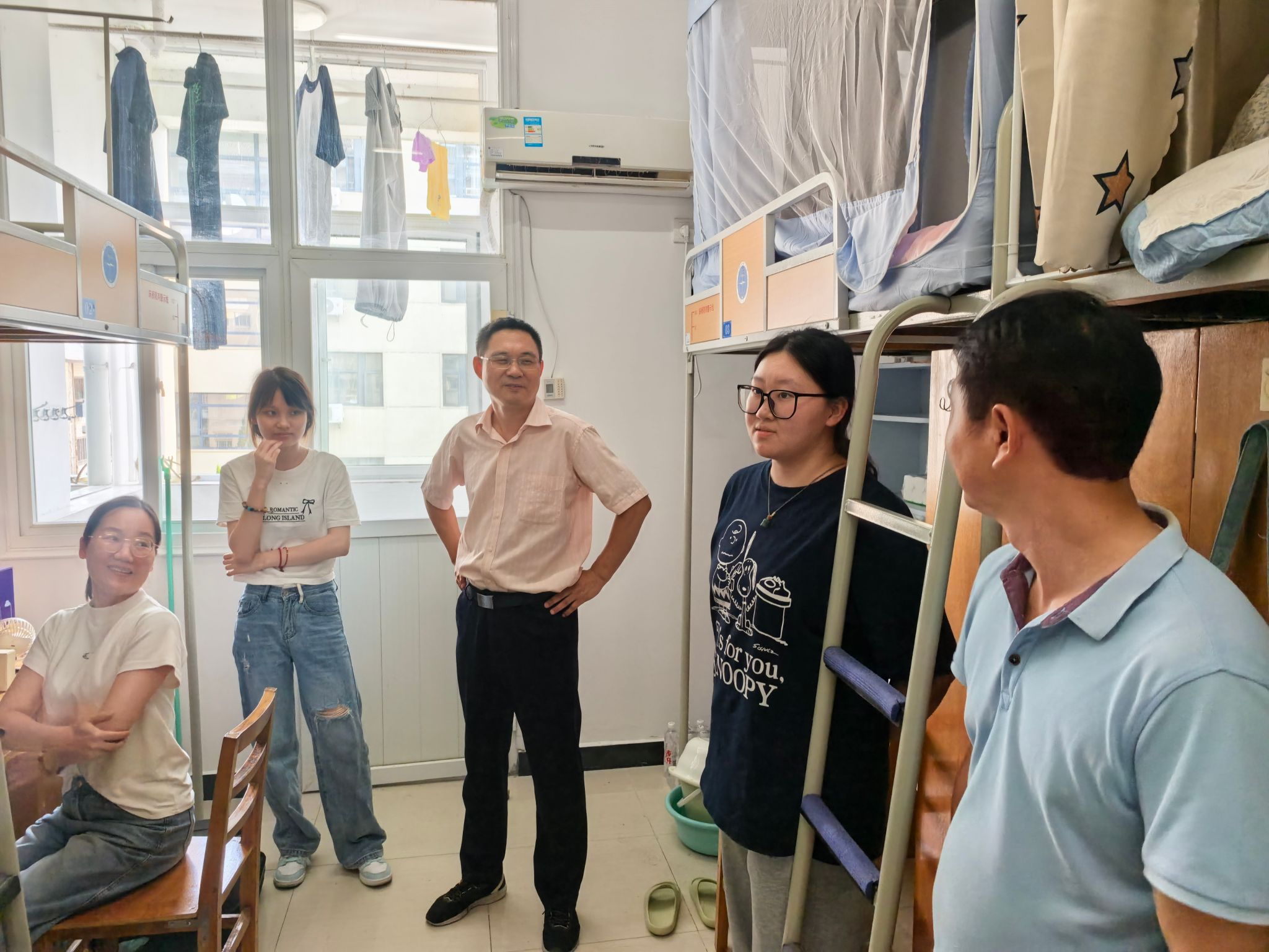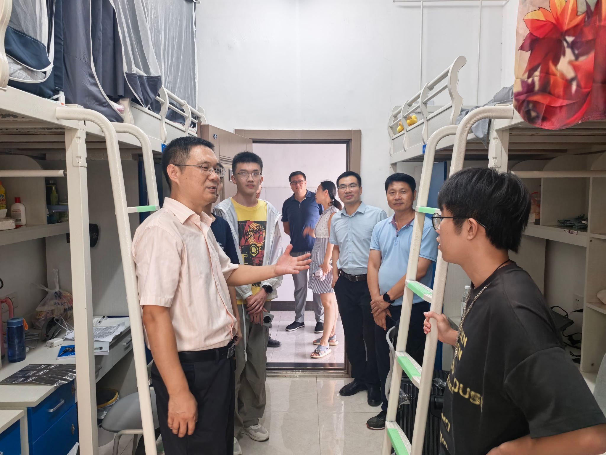 党政领导班子成员、辅导员及班主任深入新生宿舍,与新生亲切交谈,了解其生源地、入学感受及适应情况,耐心解答疑问并叮嘱尽快适应新环境、合理规划学习生活、增强安全意识,让新生在关怀中快速融入校园,增强归属感。