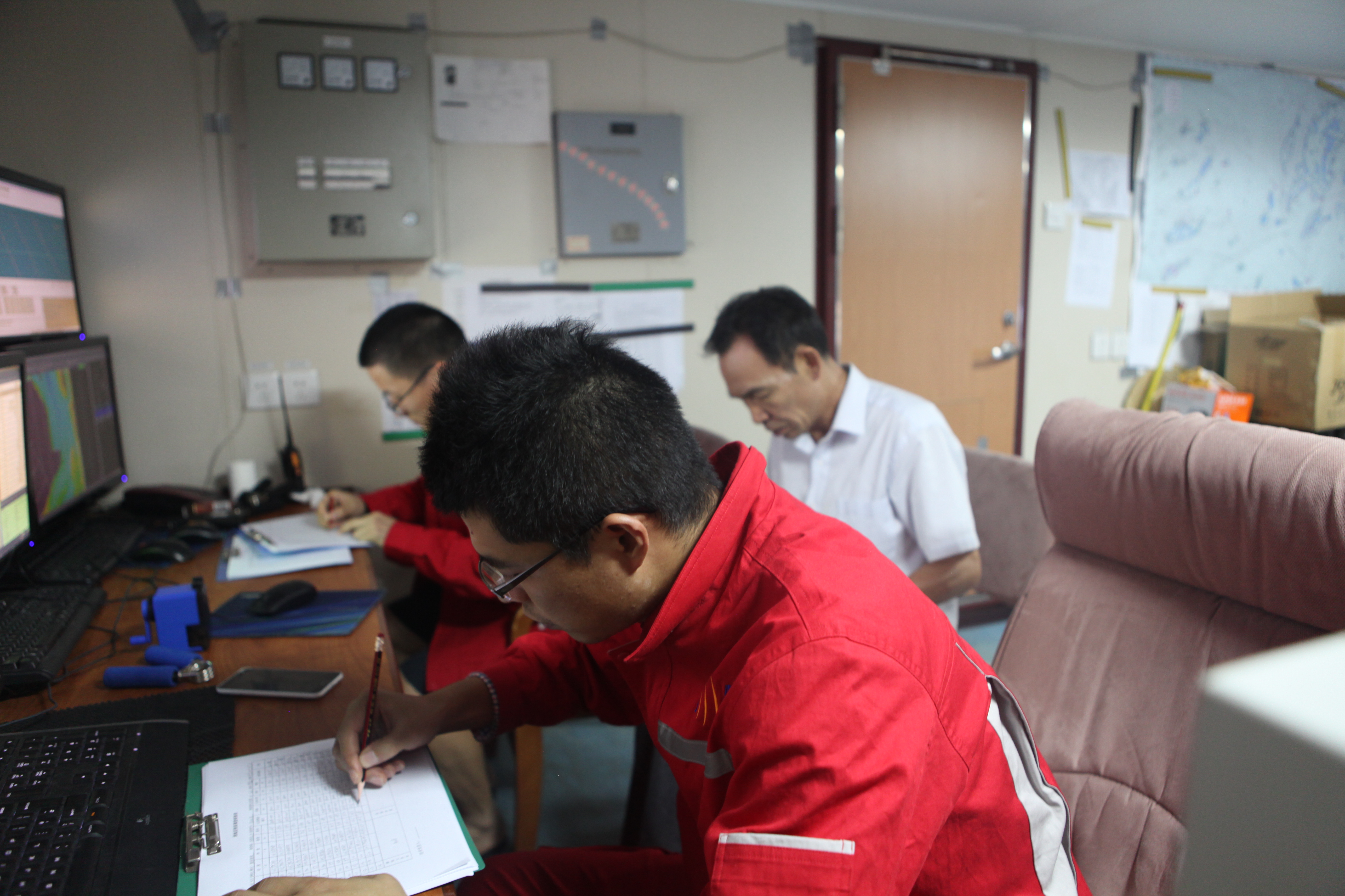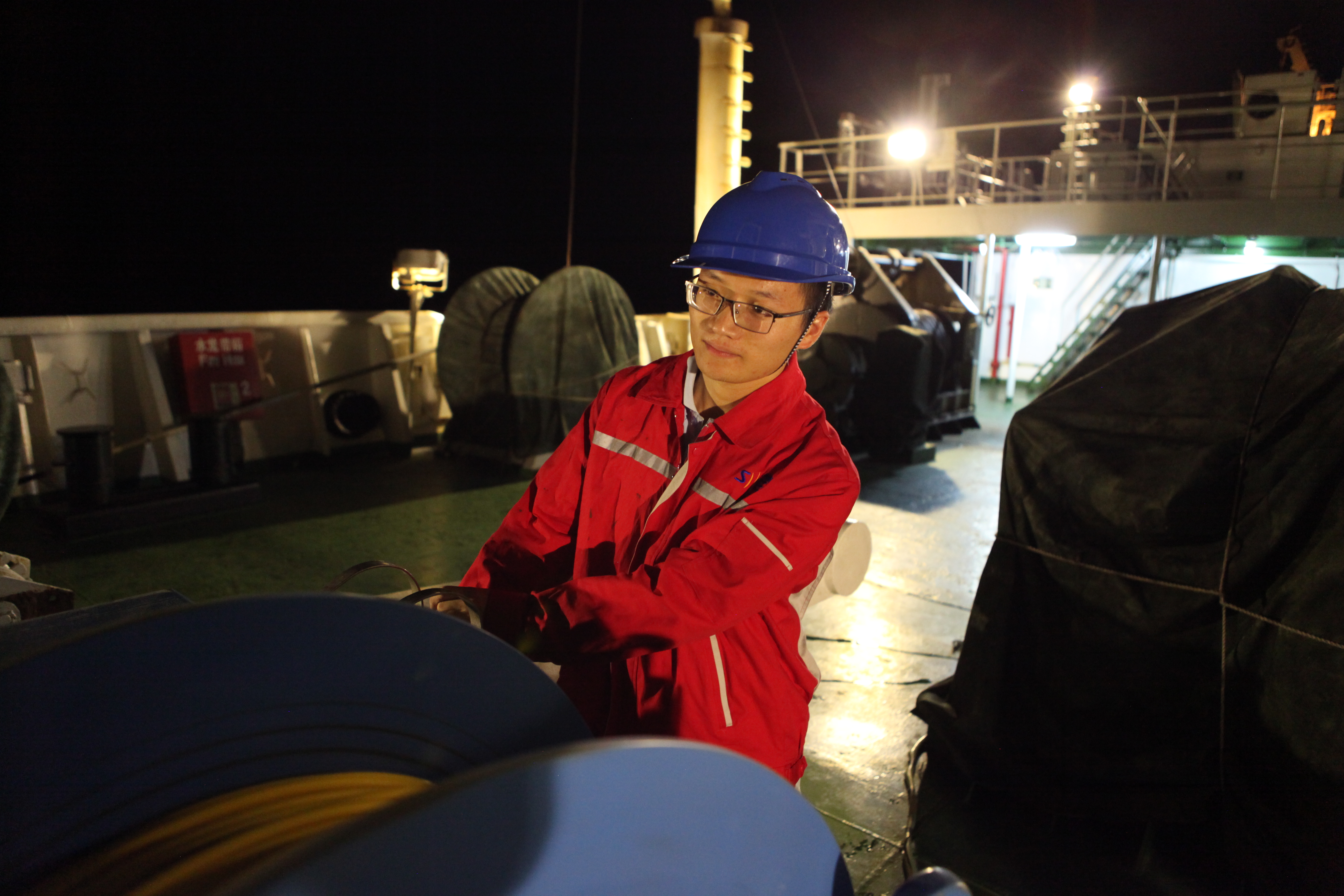 由于我们的任务时间比较紧张,所以我们船是24小时在不停的工作,我每天是晚上九点到凌晨两点值班,这使得我改变自己在麻将糊了 的作息时间。第一天还真是不太适应,值班时就有点打瞌睡,后来经过慢慢的调整,我也适应了这种工作。值班的时候主要观察仪器是否有故障,另外我们每半小时需要记录一组原始数据,因此工作还是很轻松的。