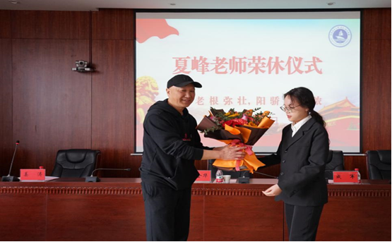 校党委副书记、纪委书记成金华向夏峰老师赠送纪念品