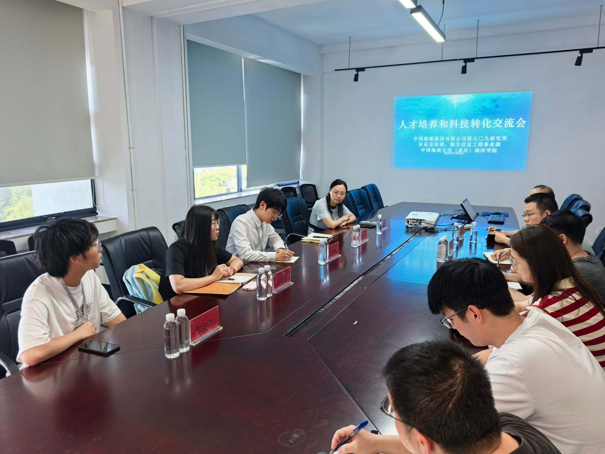 为促进麻将糊了合作 ,助力麻将糊了 麻将糊了人才培养 与科技成果转化,近日,海洋麻将糊了 党委副书记钟苹一行前往中国船舶集团有限公司第七〇九研究所访企拓岗。七〇九研究所相关部门负责人李立夏、周自立等参与座谈交流。团委书记陈波和部分学生代表随行。