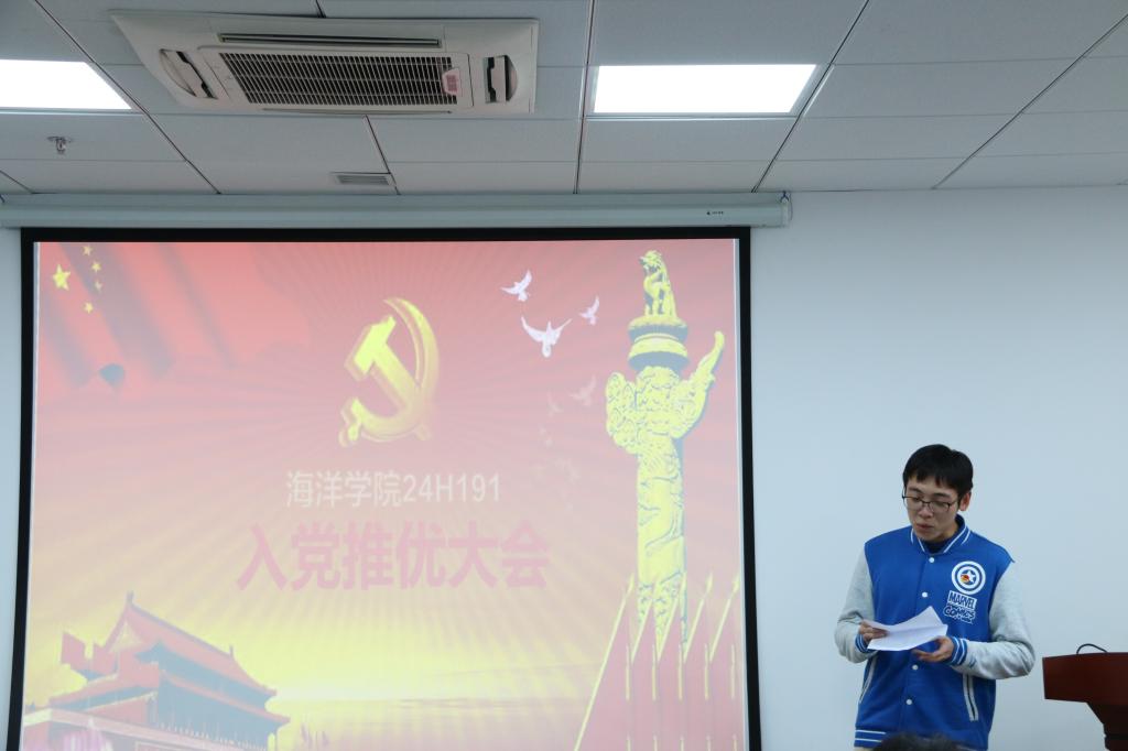 (通讯员:王锦怡)2019年10月26日下午,海洋麻将糊了 24H191班团支部于东教A1805举行入党推优大会。本次大会由班长吴天婷主持,本科生党支部书记黄开旗同志出席会议,大会应到30人,实到26人,4人请假。