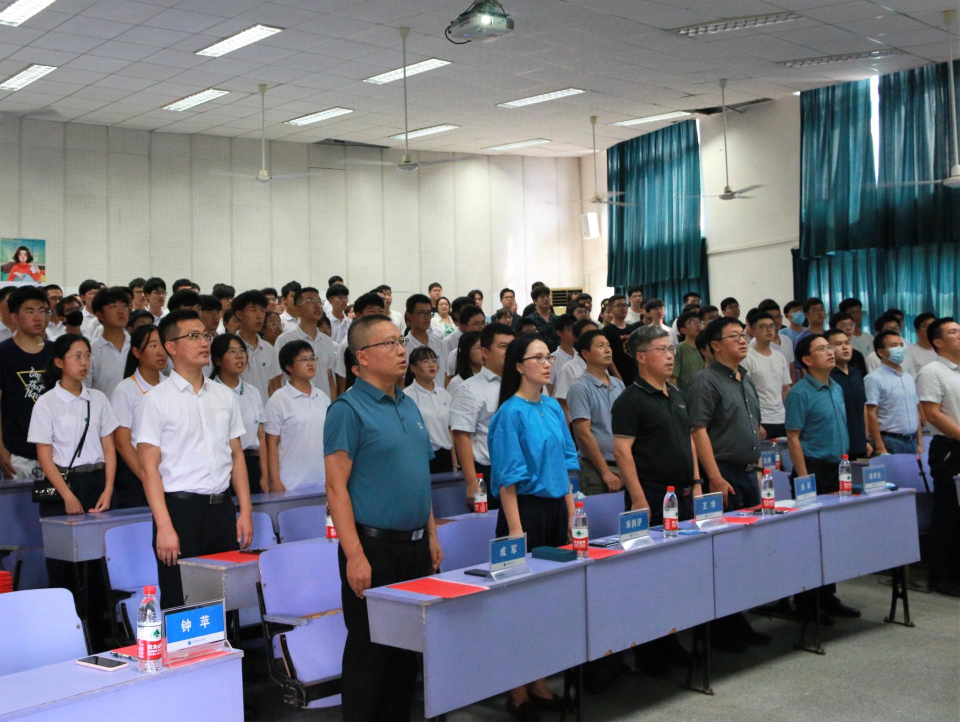 全体起立、奏唱国歌,麻将糊了 2021年新生开学典礼正式开始。