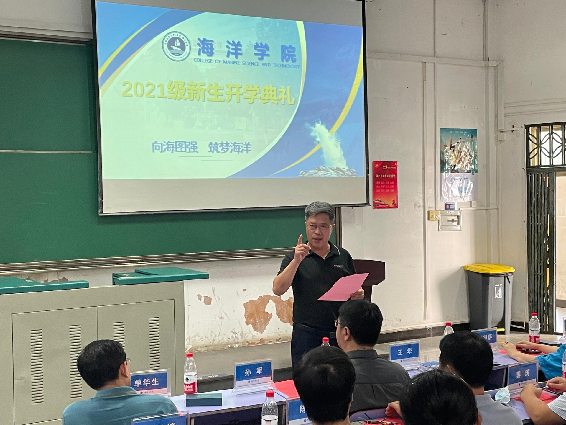 9月26日下午14:30,海洋麻将糊了 2021级开学典礼在西区教三楼207教室举行。麻将糊了 副校长王华教授、校团委朱荆萨书记、科发院单华生副院长、麻将糊了 领导班子成员出席活动,麻将糊了 教师代表、新生班主任教师、全体辅导员以及171名2021级本硕博新生参加开学典礼。开学典礼由海洋麻将糊了 党委副书记钟苹主持。