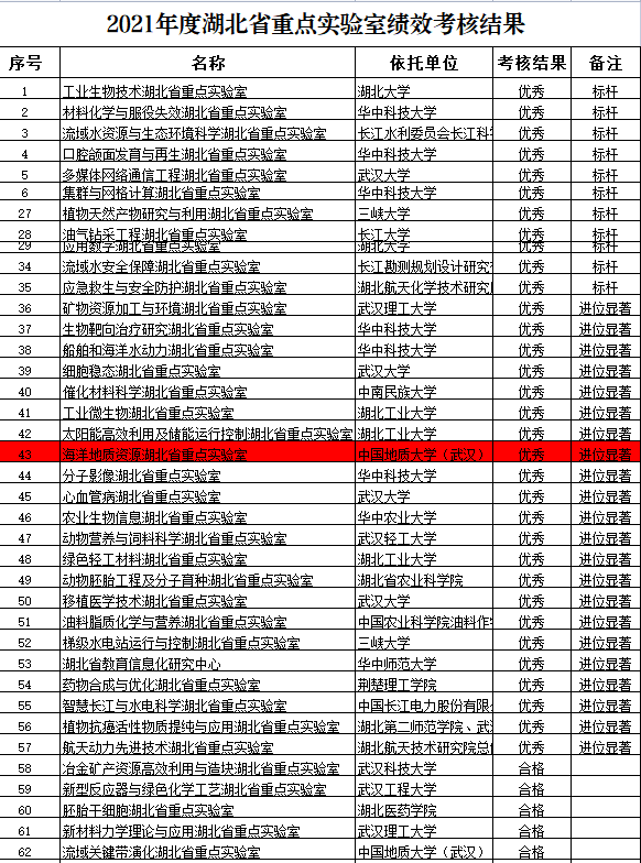 近日,湖北省科学技术厅公布了湖北省重点实验室2021年度考核结果,全省建设满一年及以上的共182个重点实验室参加了此次考核,麻将糊了 海洋地质资源省重点实验室顺利通过此次考核,并被评为“优秀”(进位显著)。