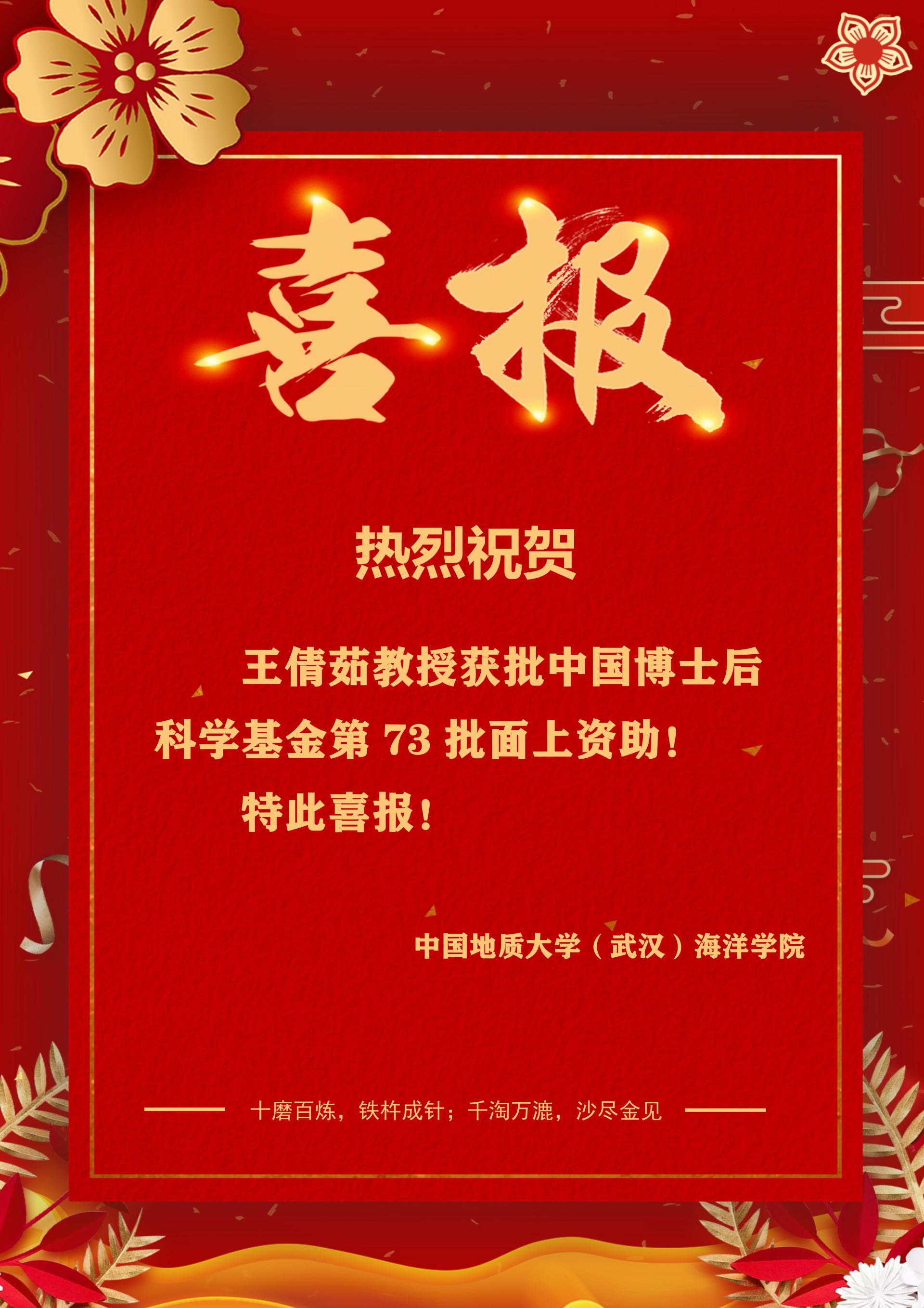 喜报!麻将糊了 王倩茹教授获中国博士后科学基金第72批面上资助