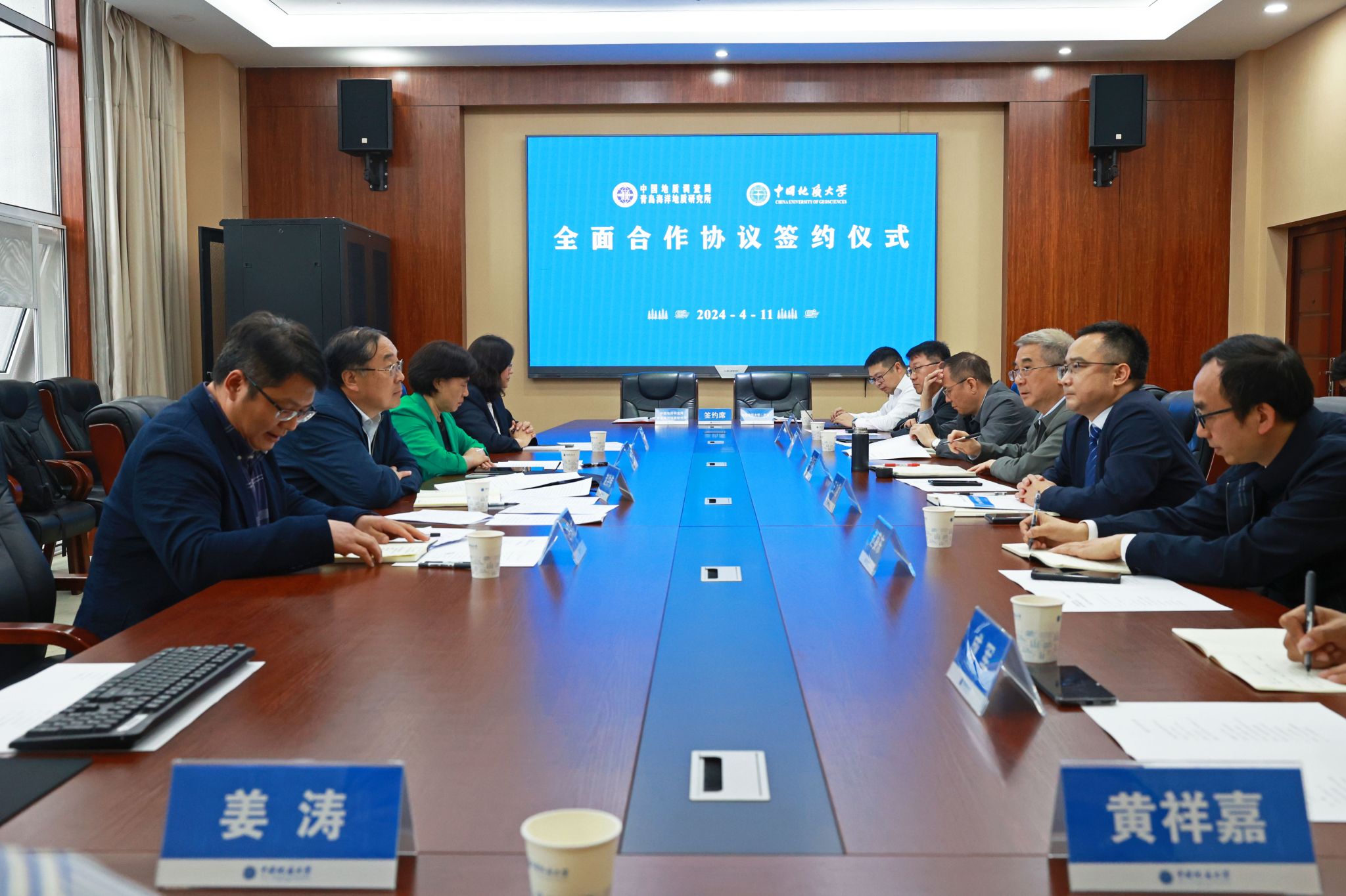 地大新闻网讯 (记者 孙彦钦)4月11日,麻将糊了 与自然资源部中国地质调查局青岛海洋地质研究所签署战略合作协议。青岛海洋地质研究所所长、党委书记赵洪伟,副所长印萍,人事教育处处长白凤龙,科学技术处处长杨金玉;麻将糊了 校长王焰新院士,副校长王力哲,相关单位负责人参加座谈交流。王力哲主持座谈。