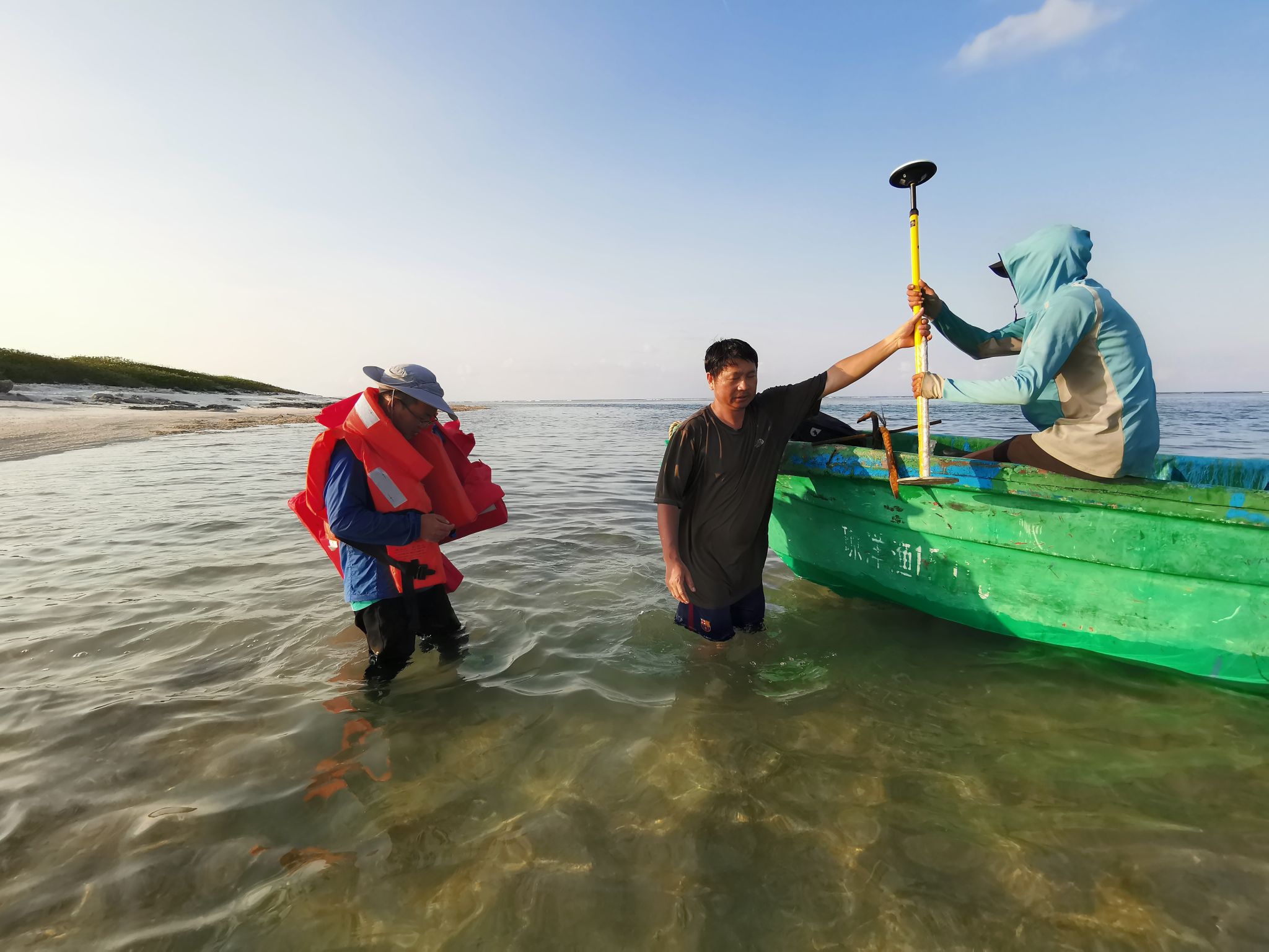 2019年4月,陈刚在南海岛礁进行测量