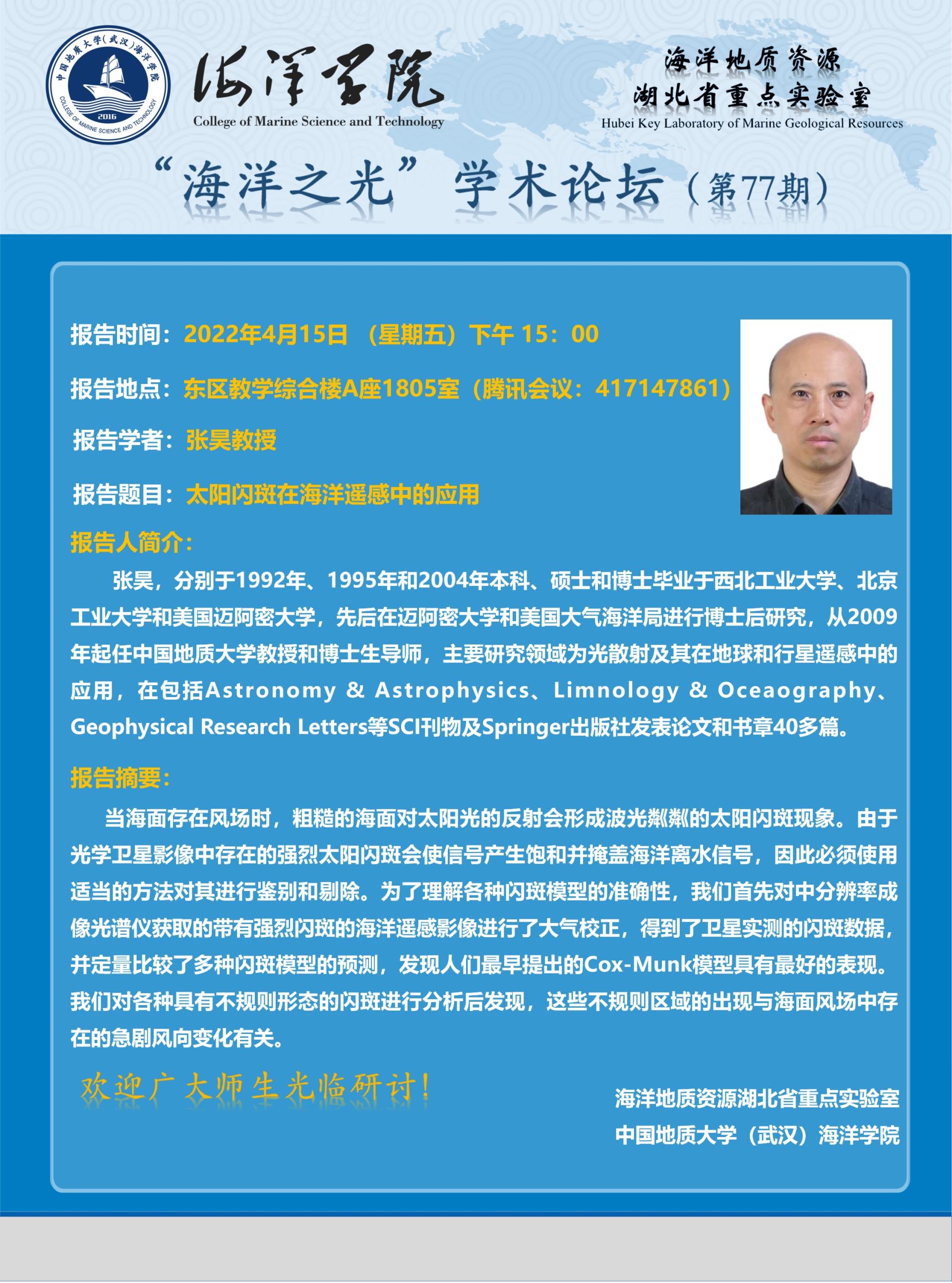 “海洋之光”学术论坛(第77期)——张昊