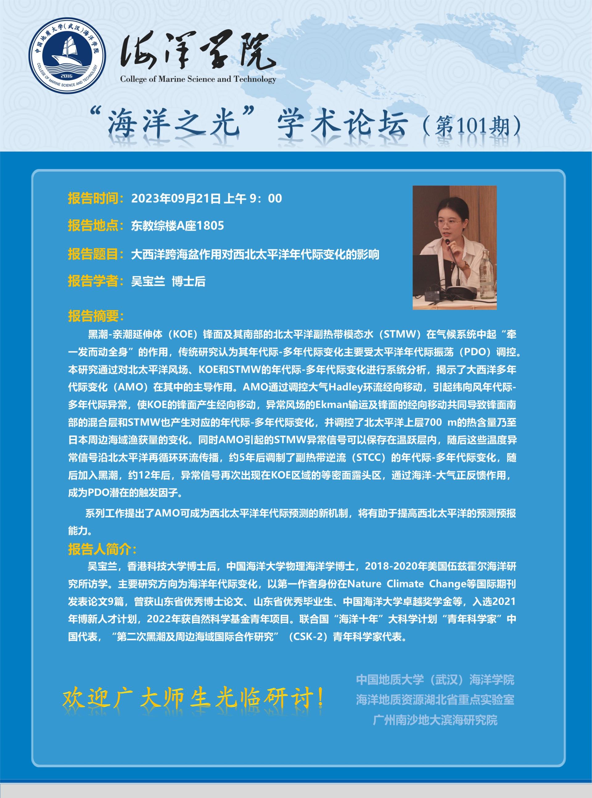 “海洋之光”学术论坛(第101期)——吴宝兰