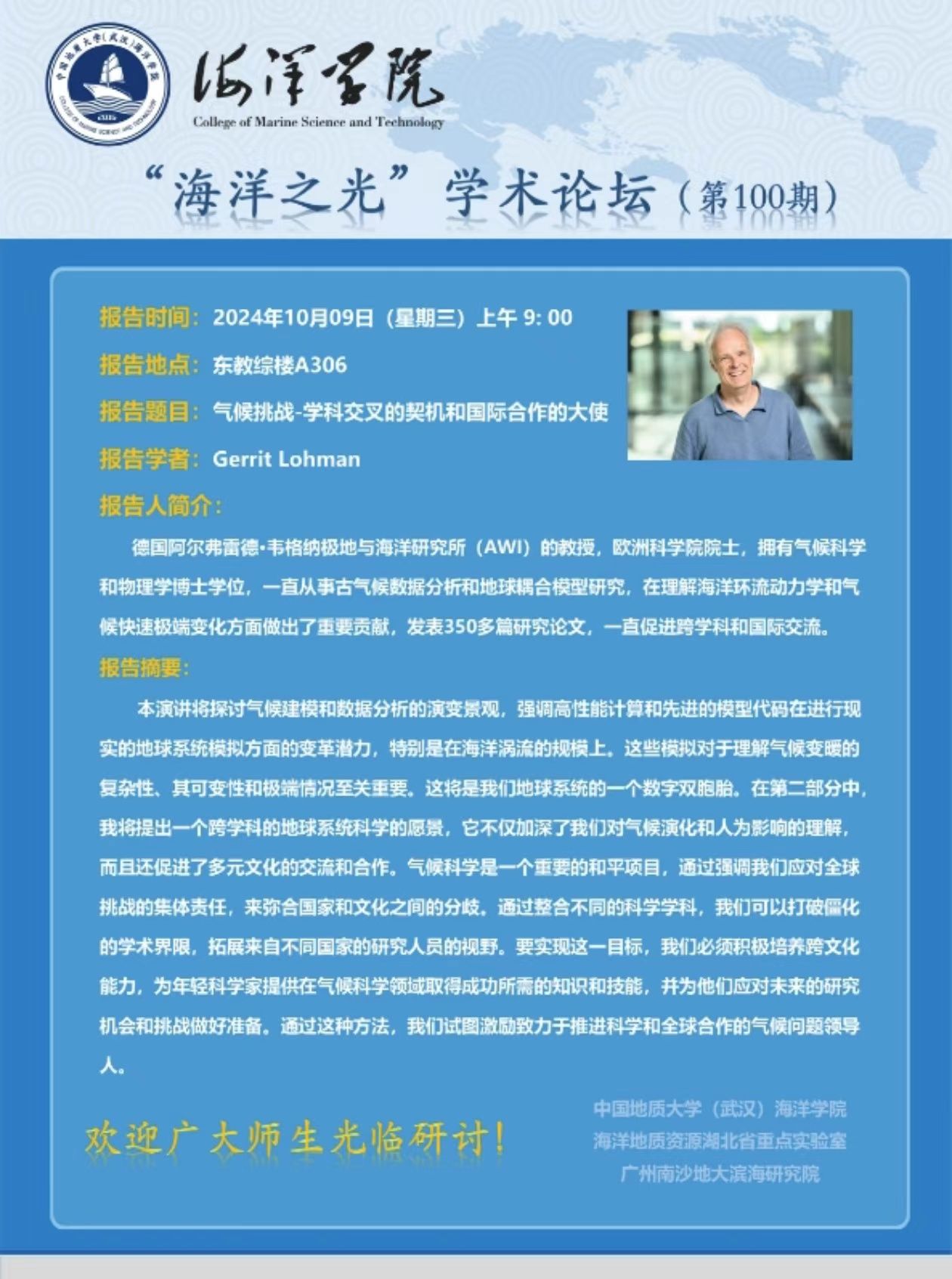 “海洋之光”学术论坛(第100期)——Gerrit Lohman