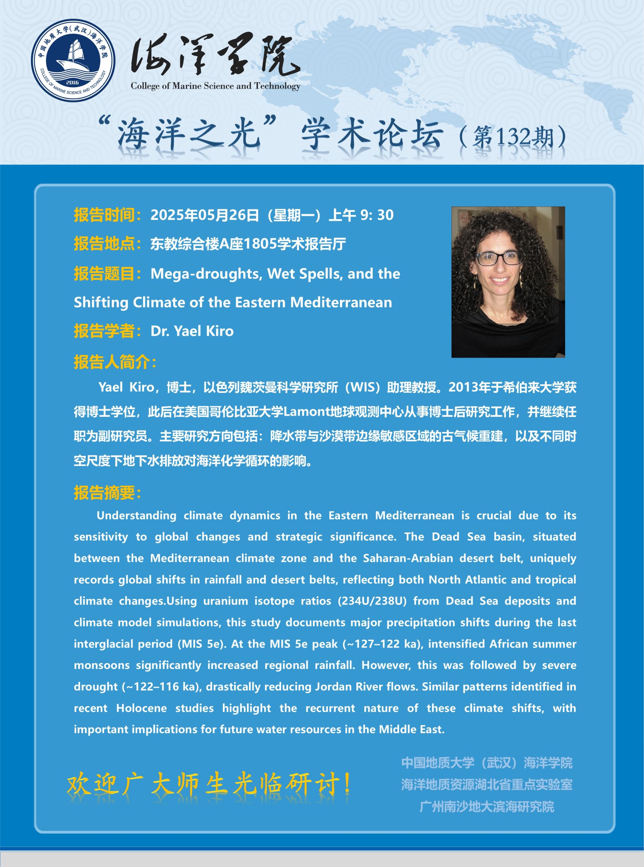 “海洋之光”学术论坛(第132期)——Dr. Yael Kiro