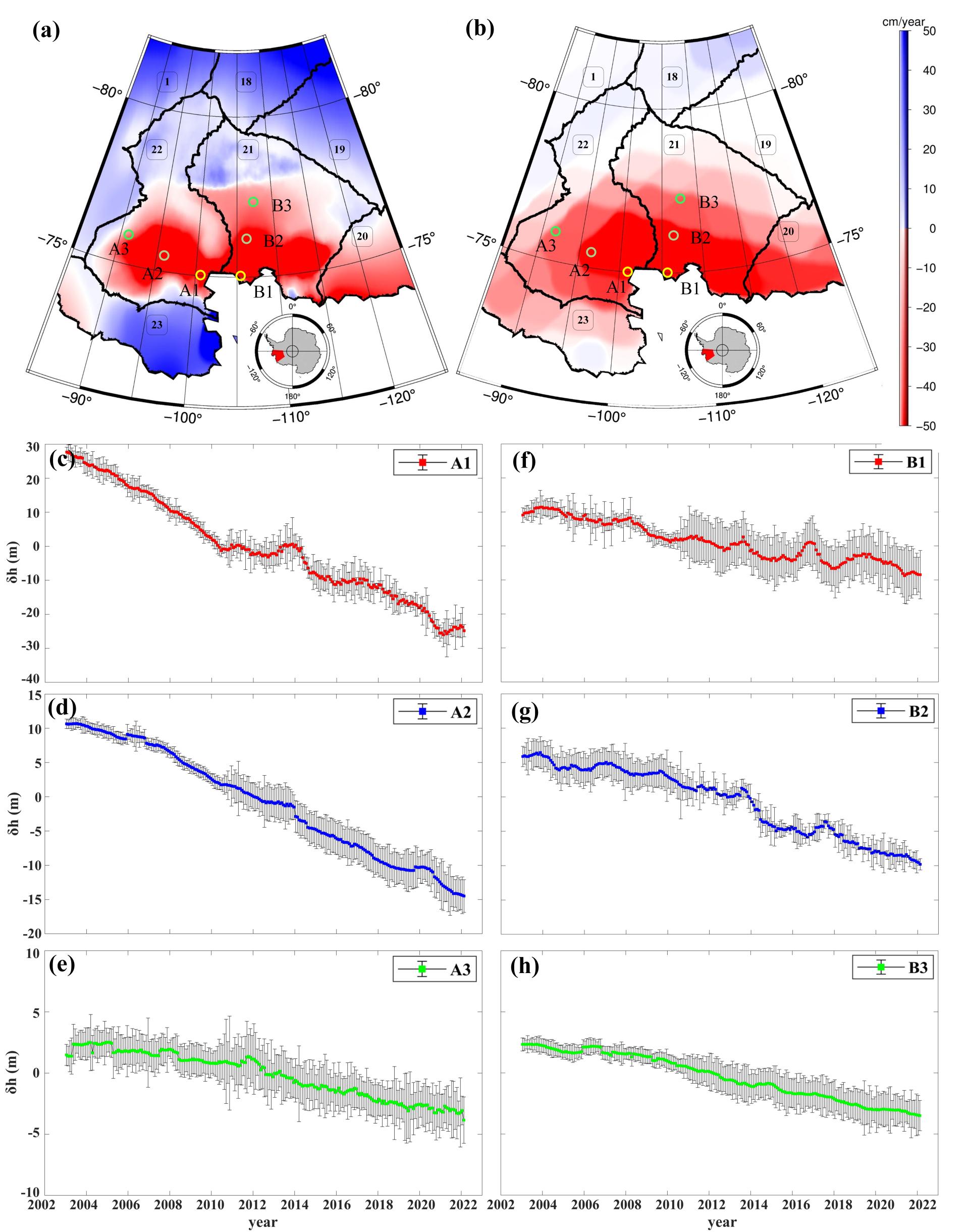 近日(2023年5月4日),国际地学著名期刊《Journal of Geophysical Research - Earth Surface》在线刊发了麻将糊了 陈刚教授团队题为“Reconstructing continuous ice sheet elevation changes in the Amundsen Sea Sector during 2003-2021 by merging Envisat, ICESat, CryoSat-2, and ICESat-2 multi-altimeter observations”的西南极洲阿蒙森海冰流域冰盖变化研究成果。上述研究由麻将糊了 博士生悦连哲(导师陈刚教授)第一作者,陈刚教授和超能芳副教授共同通讯作者等团队成员共同完成。